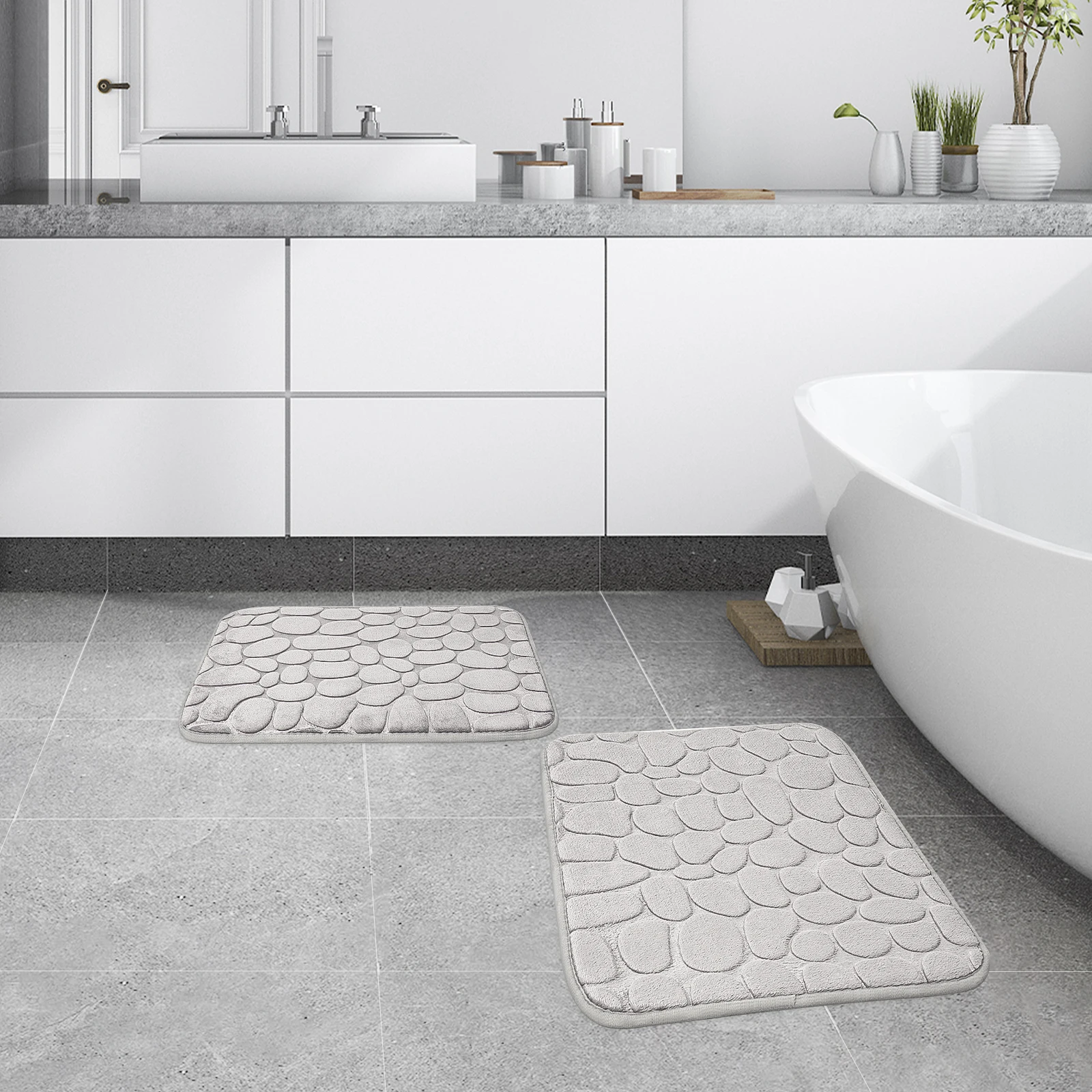 -- Anti slip: The backing of bathroom rug is coated with a non-slip latex material, providing a strong grip to keep it in place on floors.