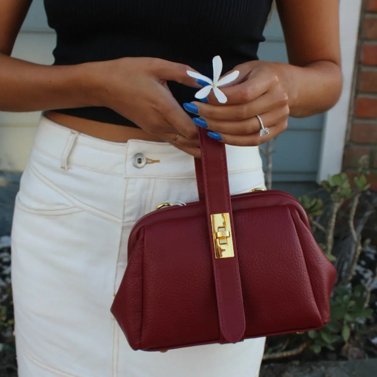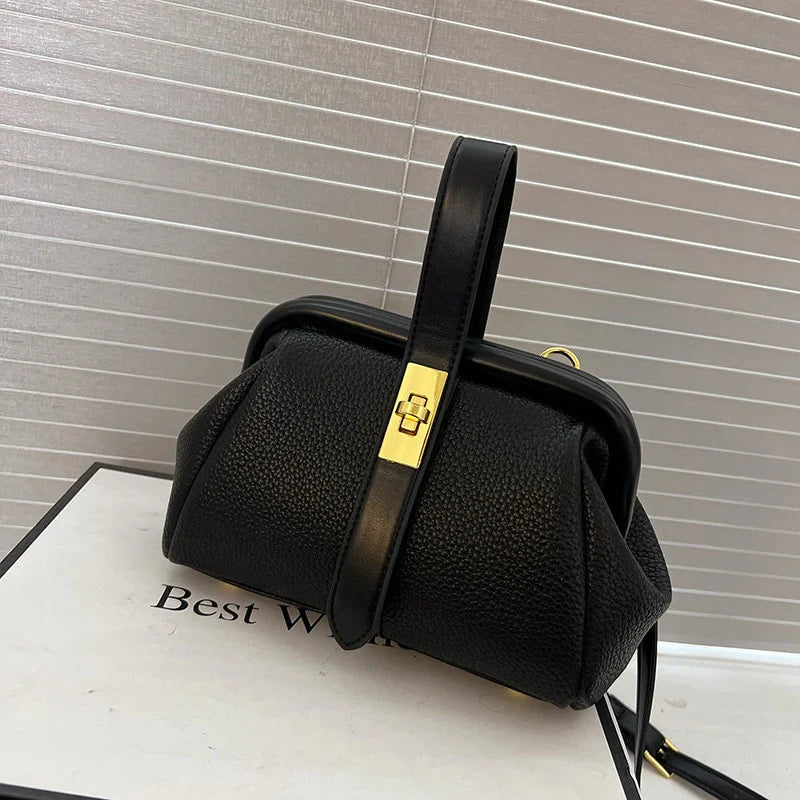 Crafted from premium vegan leather with a softly structured silhouette, this petite beauty is as durable as she is chic. The textured finish adds dimension, while the gold-tone clasp lends a touch of understated luxury.