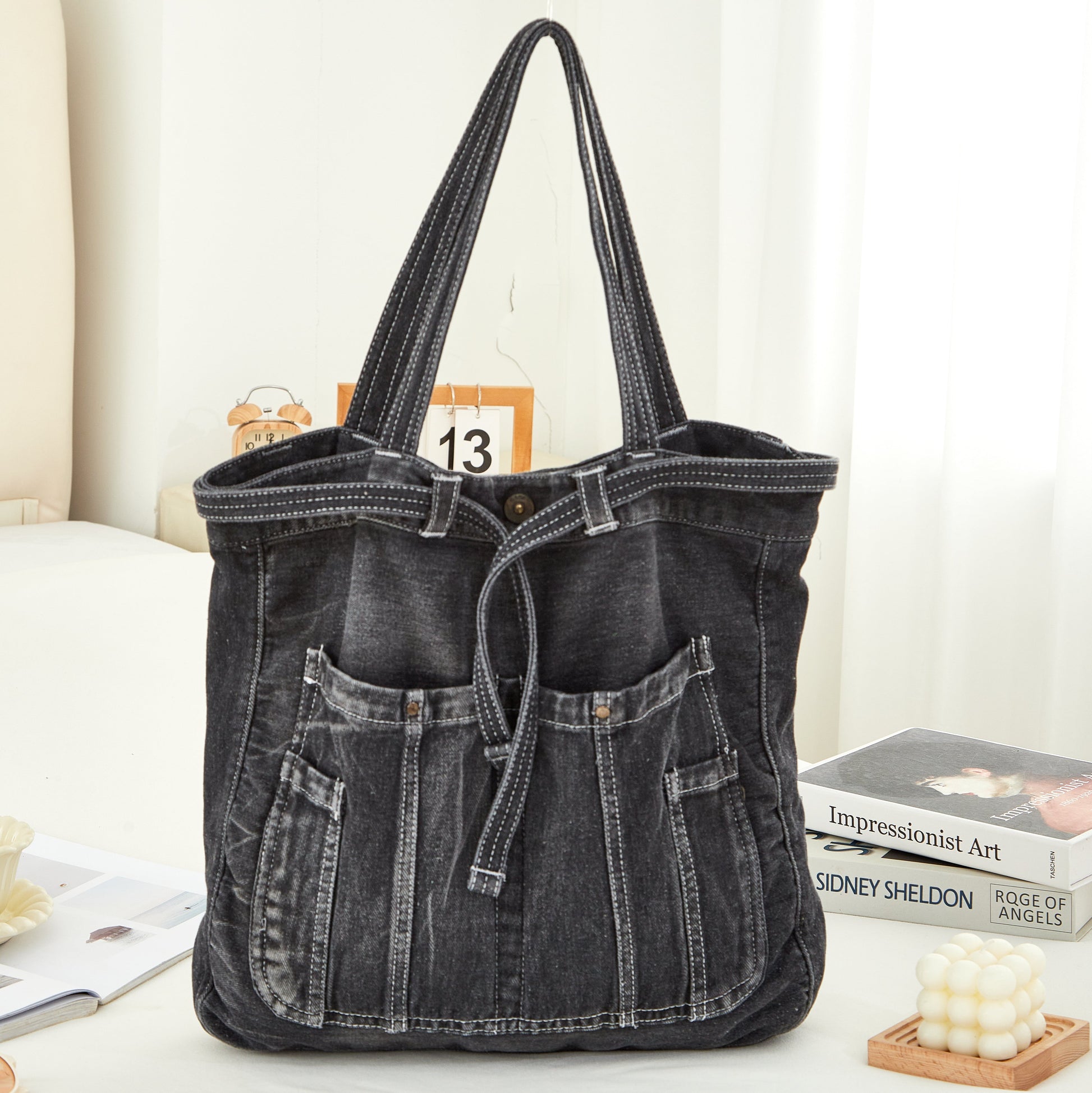 Available in classic black for a sleek vibe or bold blue for a laid-back denim edge, this tote is ready to match your mood, your outfit, and your ever-changing to-do list.